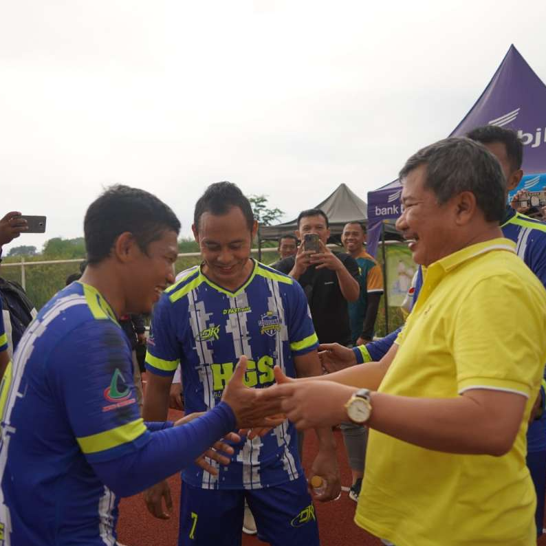 KAB. GARUT - Bupati Garut Rudy Gunawan menyaksikan pertandingan persahabatan antara Persigar Legend Vs Persib Bandung Legend dalam rangka menyambut Hari Jadi Kabupaten Garut (HJG) yang ke-210 di Stadion RAA Adiwijaya, Kabupaten Garut, Rabu (8/3/2023).