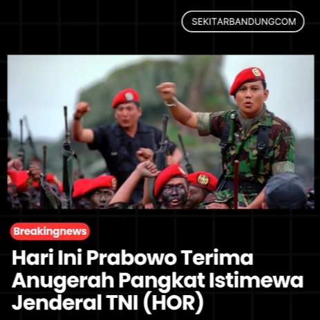 Menteri Pertahanan (Menhan) RI Prabowo Subianto akan menerima penganugerahan pangkat istimewa menjadi Jenderal TNI (HOR) hari ini. Prabowo akan mendapatkan tanda kehormatan kenaikan pangkat menjadi jenderal TNI bintang 4 tersebut dalam Rapat Pimpinan TNI di Mabes TNI.