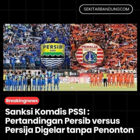 Komisi Disiplin ( Komdis ) PSSI memberikan sanksi kepada Persib Bandung dengan pertandingan tanpa penonton saat melawan Persija Jakarta yang nantinya akan digelar di Stadion Si Jalak Harupat pada 9 Maret 2024.