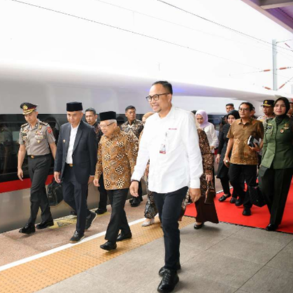 Penjabat Gubernur Jawa Barat Bey Machmudin beserta Penjabat Ketua TP PKK Jabar Amanda Soemedi Bey Machmudin menyambut kedatangan Wakil Presiden RI Ma'ruf Amin beserta istri Wury Ma’ruf Amin di Stasiun Kereta Cepat Padalarang, Kabupaten Bandung Barat, Selasa (23/4/2024).